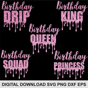 This is a digital download Birthday Drip Svg,Birthday Queen Svg,Birthday Princess Svg,Birthday Squad Svg,Birthday King Svg,Birthday Shirt,Birthday Party Svg, You can import these files to a number of cutting machine software programs, including Cricut Design Space, Silhouette Studio, and Brother ScanNCut. With this purchase, you will receive a zipped folder containing these images in SVG, DXF, EPS, PNG,format. Use these files to create iron on vinyl shirt decals, tumbler cup ,signs, mugs, wall decals, and more!